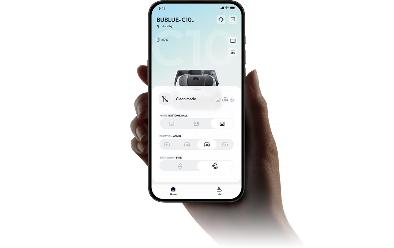 Bubot 700P's dual-drive system, roller scrubbing brushes, and tank-like tracks ensure smooth wall climbing, precise waterline scrubbing, and easily handling obstacles and climbing steps. No spot left untouched!