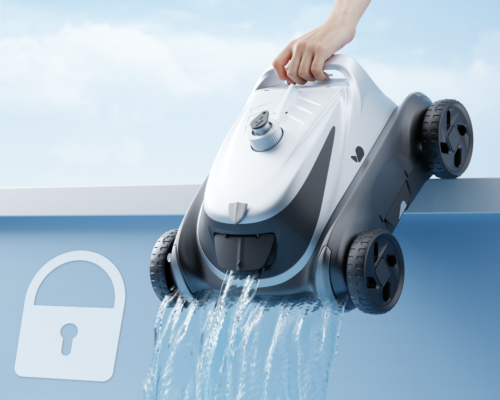 Bublue's patented DirtLock™ 2.0 technology revolutionizes the way our robotic cleaners manage waste. With DirtLock™ 2.0, all stored water is expelled in just 5 seconds during drainage, setting a new industry standard. This advanced technology is designed with a unique interior that securely traps debris, leaves, and fine sands during drainage, ensuring a nearly 100% containment rate.