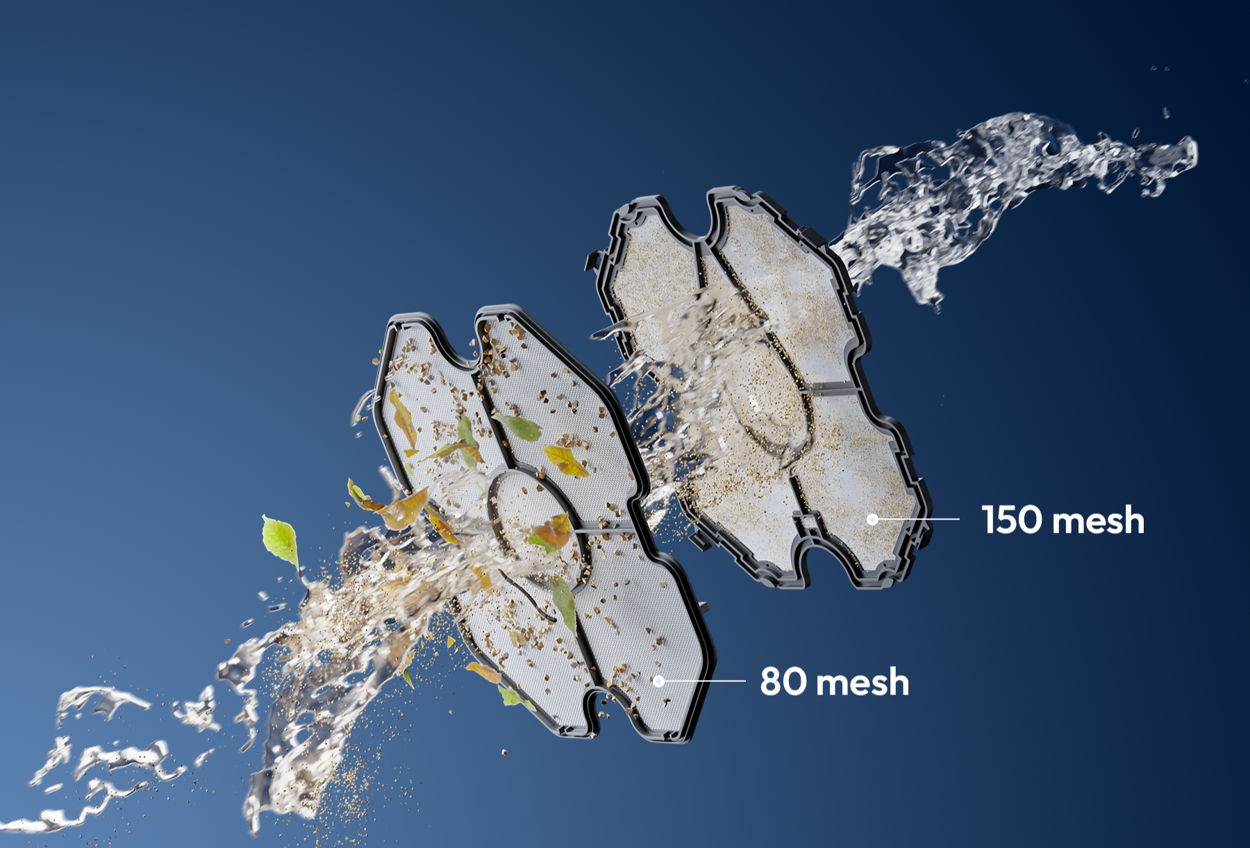 Bublue's patented filter features a meticulously engineered dual-layer design. The first layer features an 80-mesh filter, primarily used to capture larger debris such as leaves and sand. The second layer is a 150-mesh filter, capable of trapping finer dirt and particles to ensure crystal-clear water quality. This combination of filters with different precision levels enhances single-cycle cleaning efficiency by 15%.