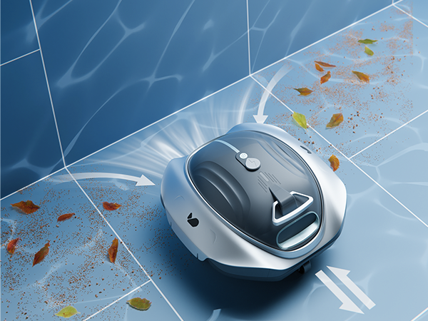 Bublue's patented Corner Boost Technology ensures superior edge and corner cleaning. Upon encountering a pool wall, the cleaner automatically reverses a short distance before moving forward again, ensuring thorough cleaning along edges and corners. After two wall contacts, the cleaner intelligently adjusts its direction for optimized coverage.